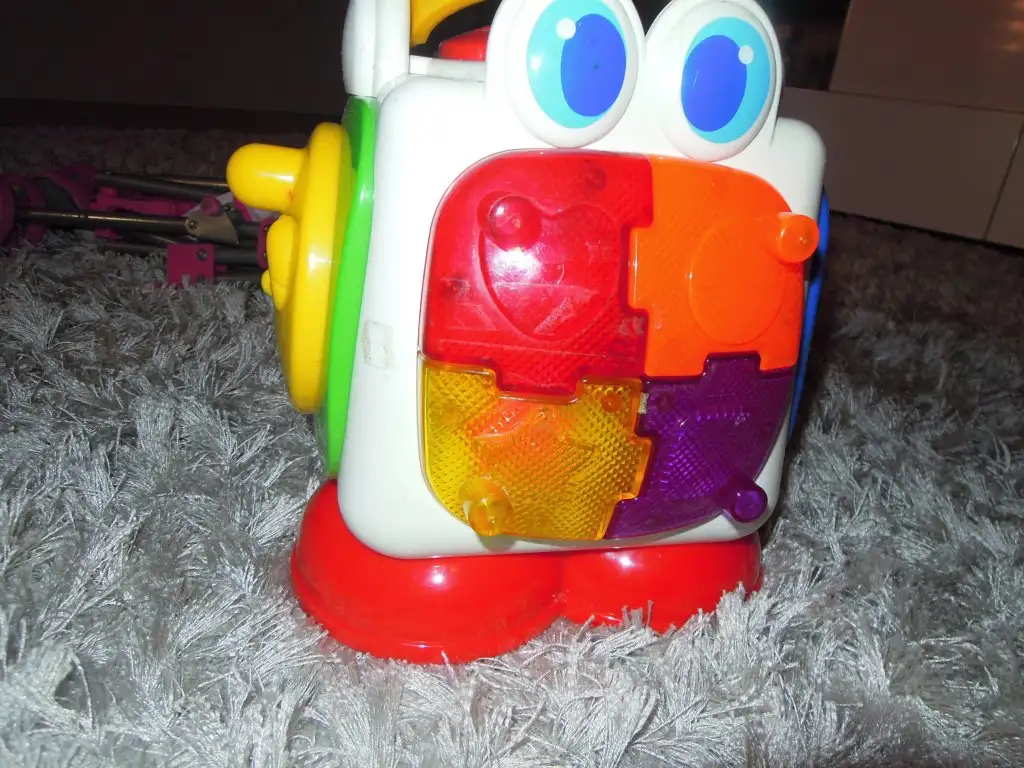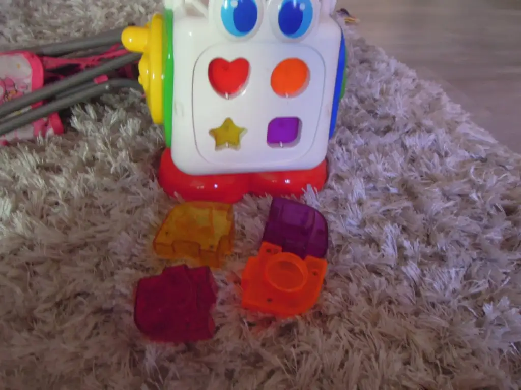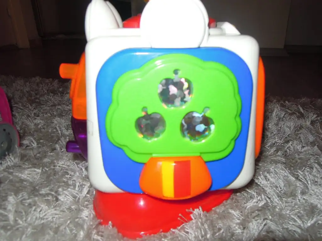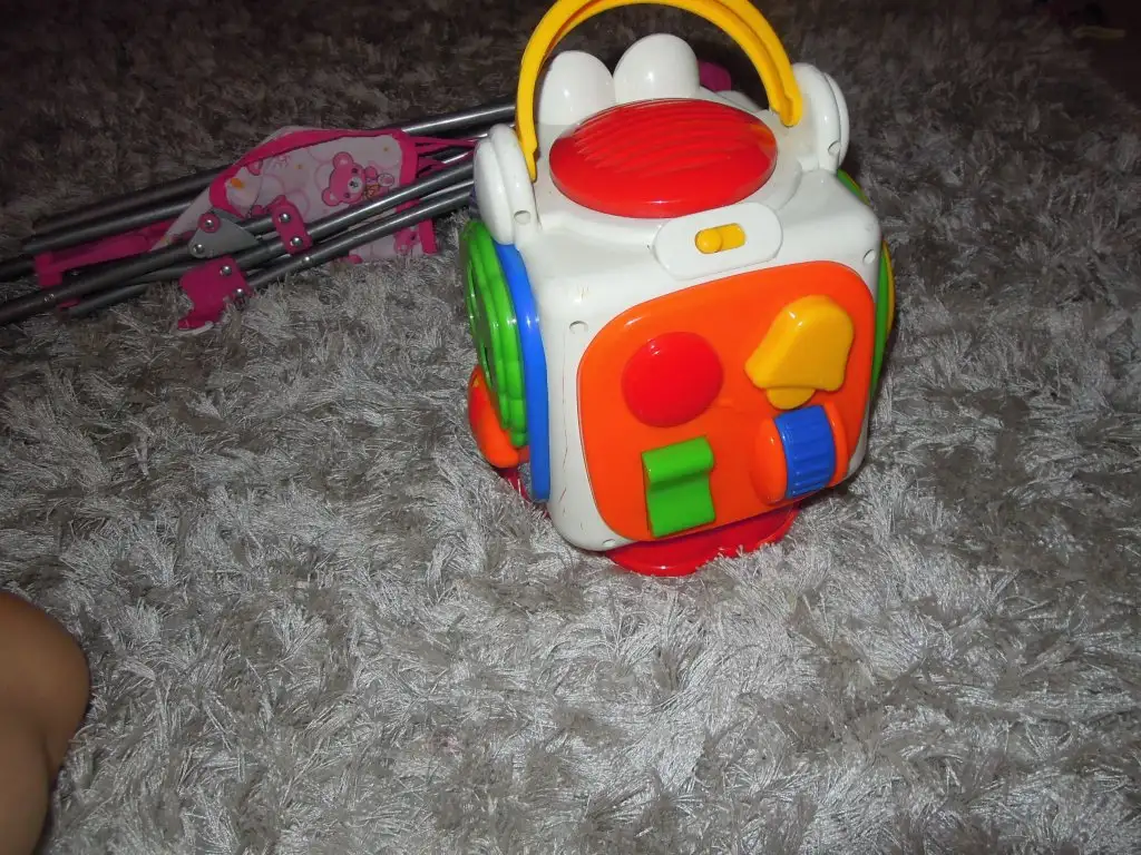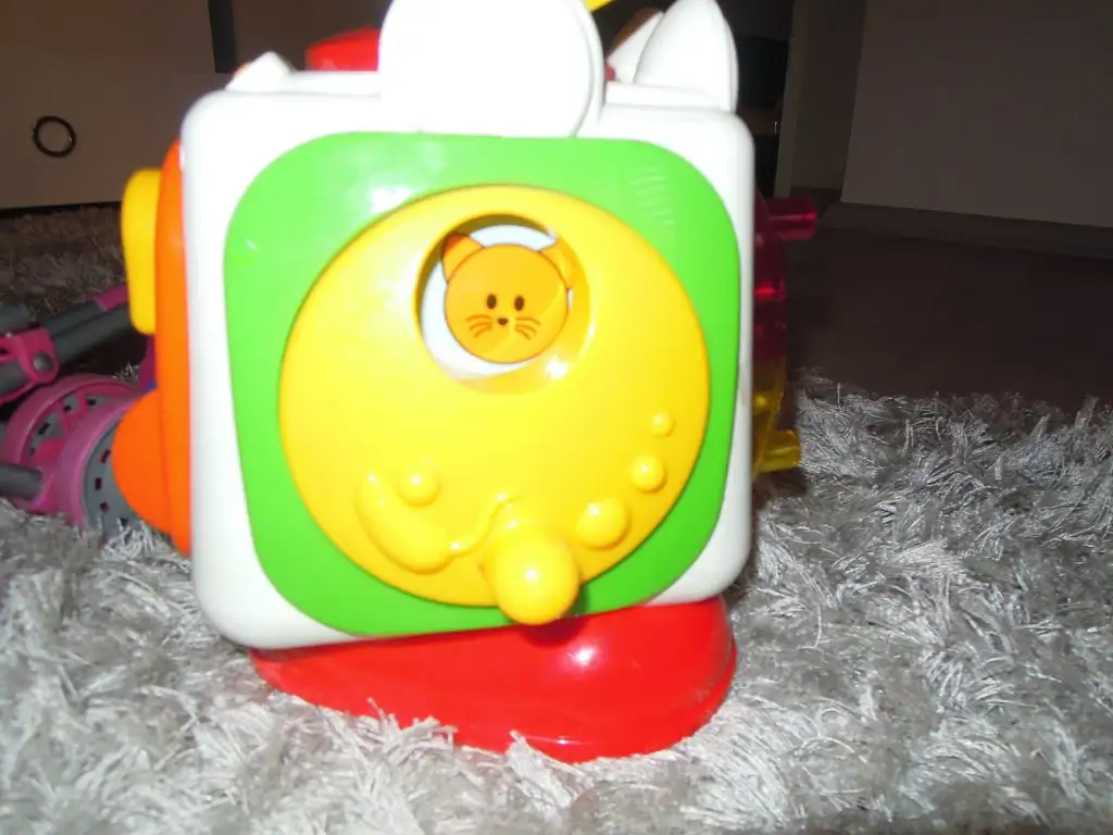 bu ürünü anlatmakla bitiremem:) okadar çok fonksiyonu varki:)aklıma gelenleri yazayım.birincisi pilleri içinde yine sayılı kullanıldı oda ben kullanmışımdır:( ışıklı müzikli.şeklilleri doğru yere koyduğunuz müzik çalıyor ışıkları yanıyor. yanlış koyduğunuzda uyarı sesi veriyor.en üstteki büyük butondan yine harika müzik sesleri çalışıyor.yanlardaki her şey kullanılıyor köpek kedi resmlerine getirince havlama ve miyavlama sesleri geliyor.yanlardaki herşey harekli ve sesli çocuğunuz buna bayılacak :) yenisinden farksız çizik bile yok.herşeyi çalışır durumda..taşıma koluda var 40 tl