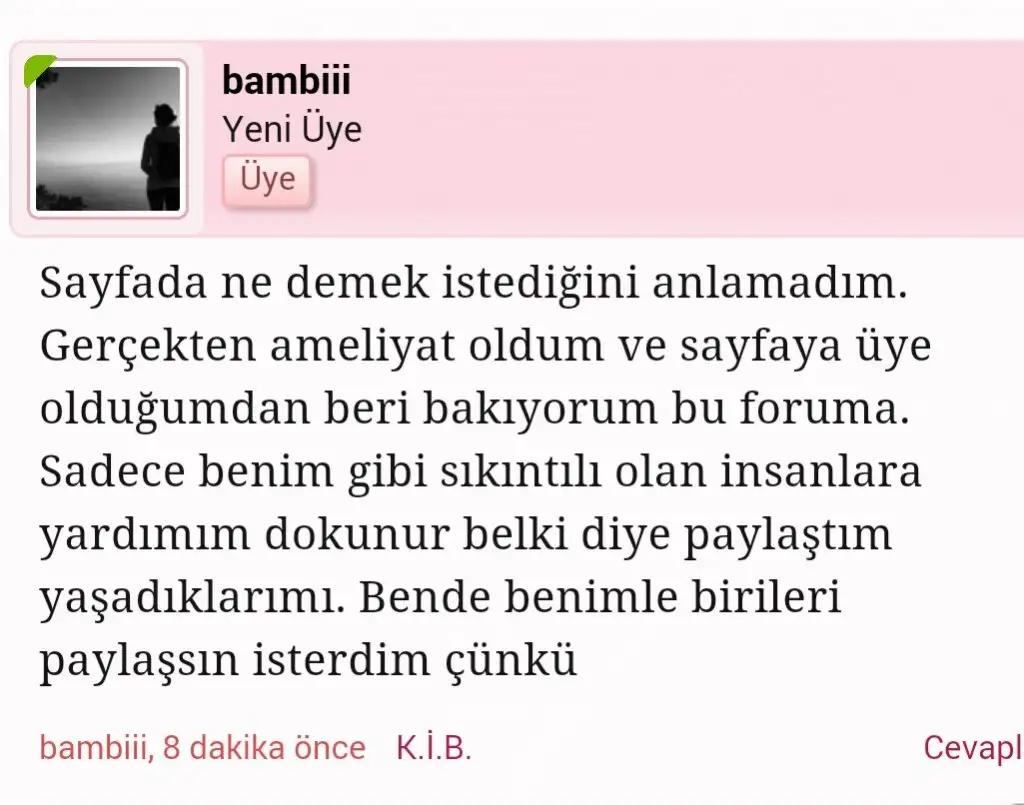 Arkadaşlar bende burdayım ama çok fazla yazmıyorum çünkü paylaşacağım çok fazla bişey yok. özelden bazı arkadaşlarla konuşuyorum saolsun onlarda yardımcı olmaya çalışıyorlar.Özellikle Ankarada yaşayan arkadaşlar doktor konusunda yardımcı olabilirlerse sevinirim bende. Cumartesi bi doktorla görüştüm iyi güzel anlattı ama biraz ilgisiz gibi geldi belki bana öyle gelmiştir bilmiyorum ama bu hafta sonu başka bi doktorla daha görüşücem ve ona göre karar vericem artık biran önce kurtulmak istiyorum bu dertten bende :(