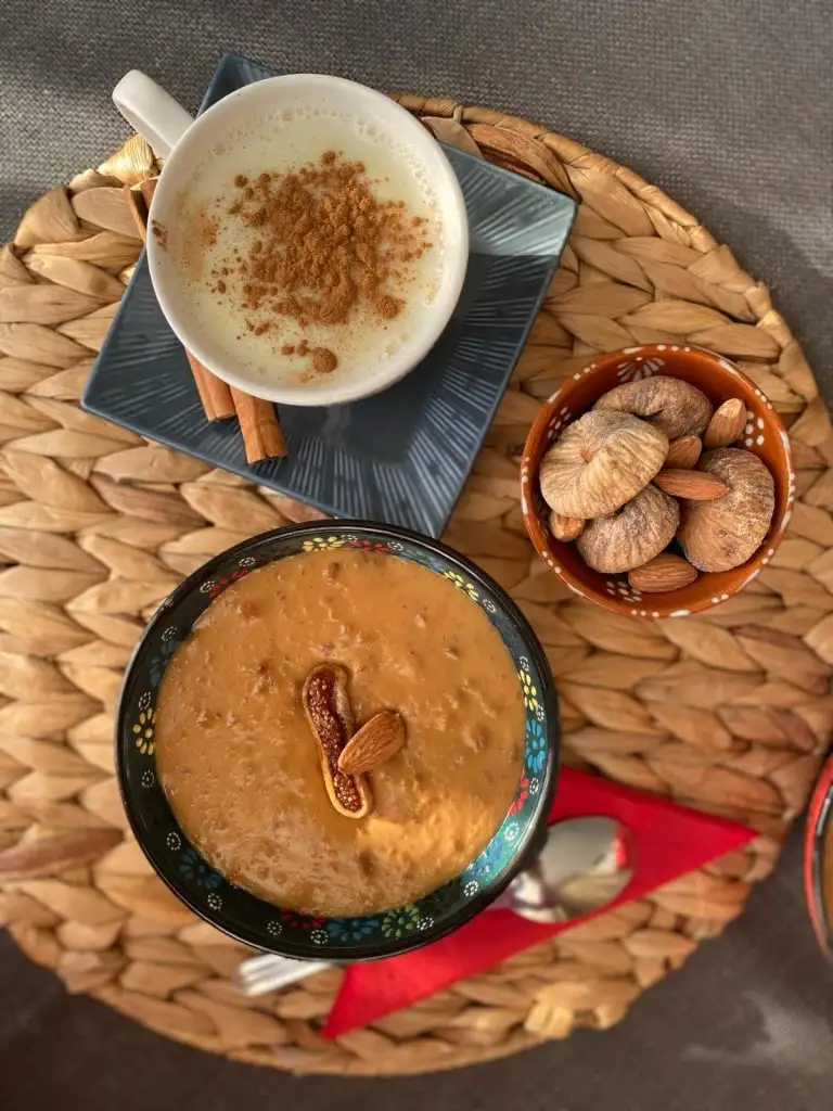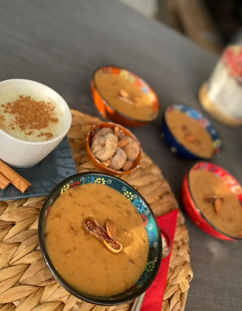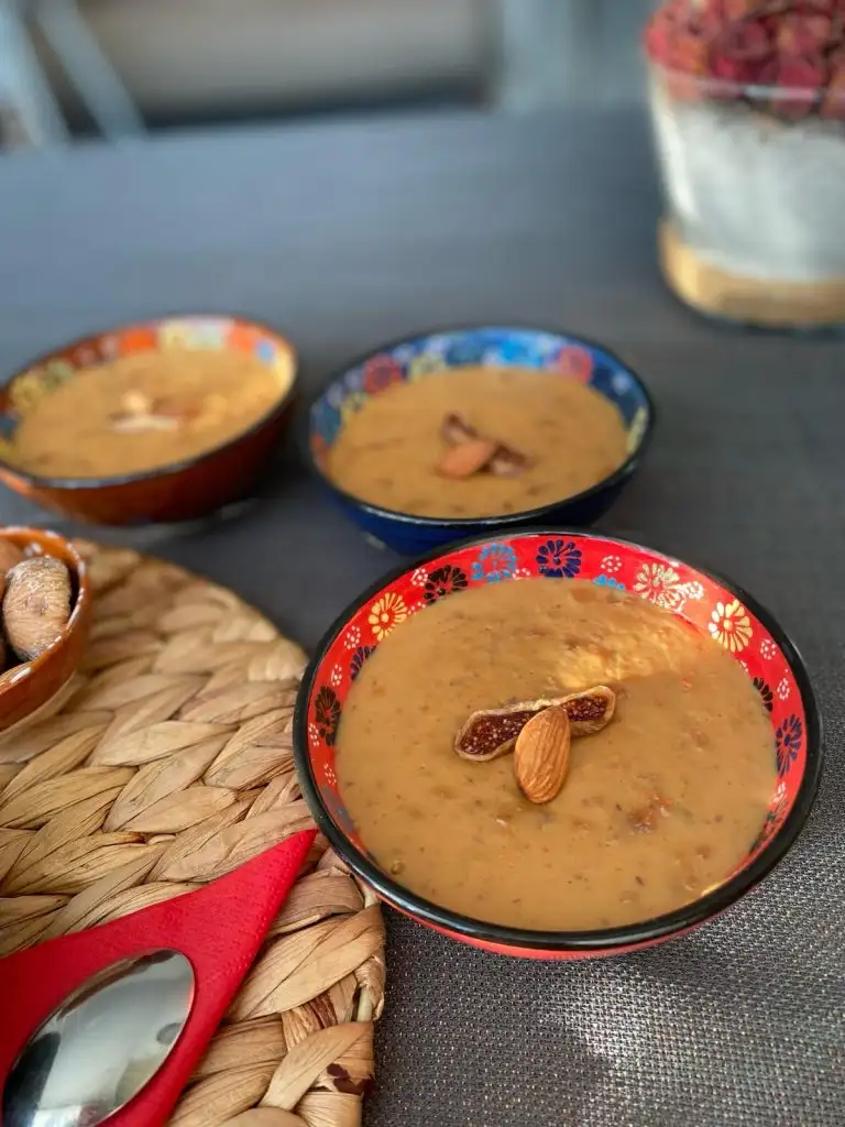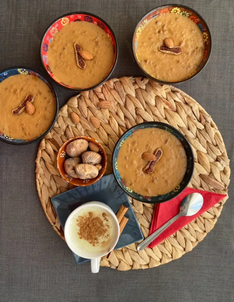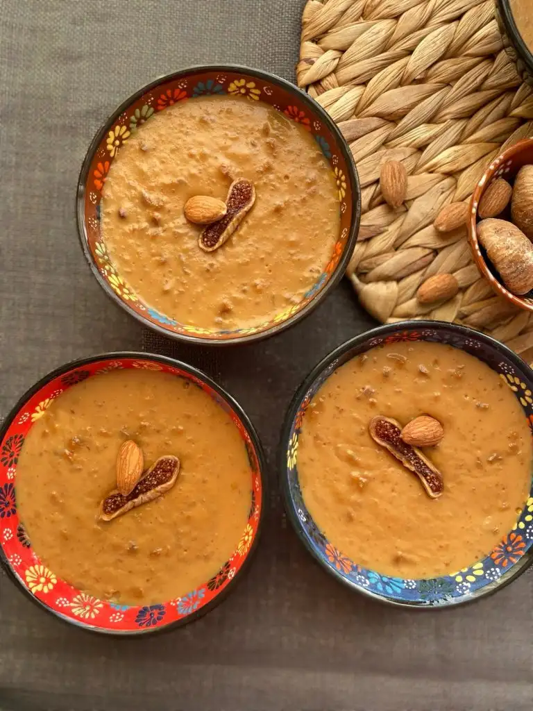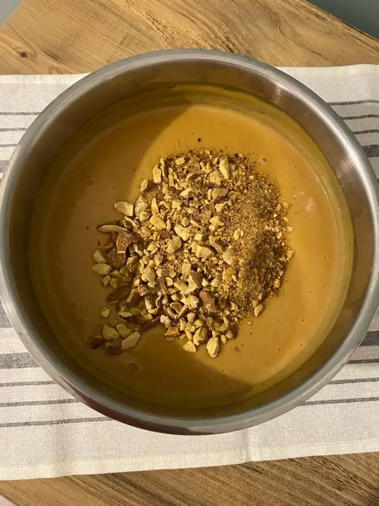 Piştikten sonra üzerine bademleri ekleyip servis kaselerine paylaşıyoruz.