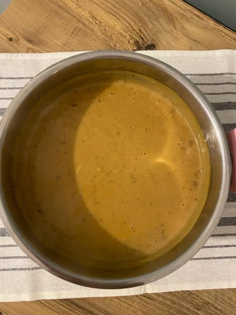 Bu karışımı şekerli süt karışımına ekleyip hızlıca karıştırıyoruz göz göz oluncaya kadar pişiriyoruz.