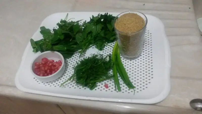 Aynı kısır yapar gibi bulguru kaynar su ile ıslatıyoruz dinlenmeye bırakıyoruz bu arada bizde yeşilliklerimizi doğrayalım