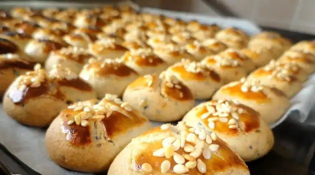 Üzerlerine önce yumurta sarısını sürelim (ilk fotoğrafta yaptıklarımız için) bıçakla yuvarlaklarımızın üzerini artı şeklinde çizelim...