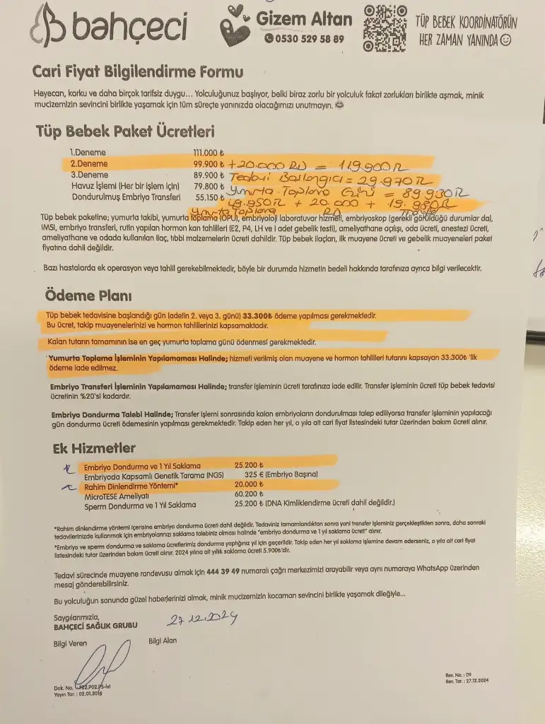 Bende daha dün görüştüm evet alıyorlar rahim dinlendirme transfer ayrı ücret. Embiriyo dondurma ayrı ücret.Tüp bebek fiyatı ne kadar bahçecide birde rahim dinlendirme aralığında embriyo dondurma parası alıyorlar mı