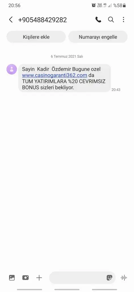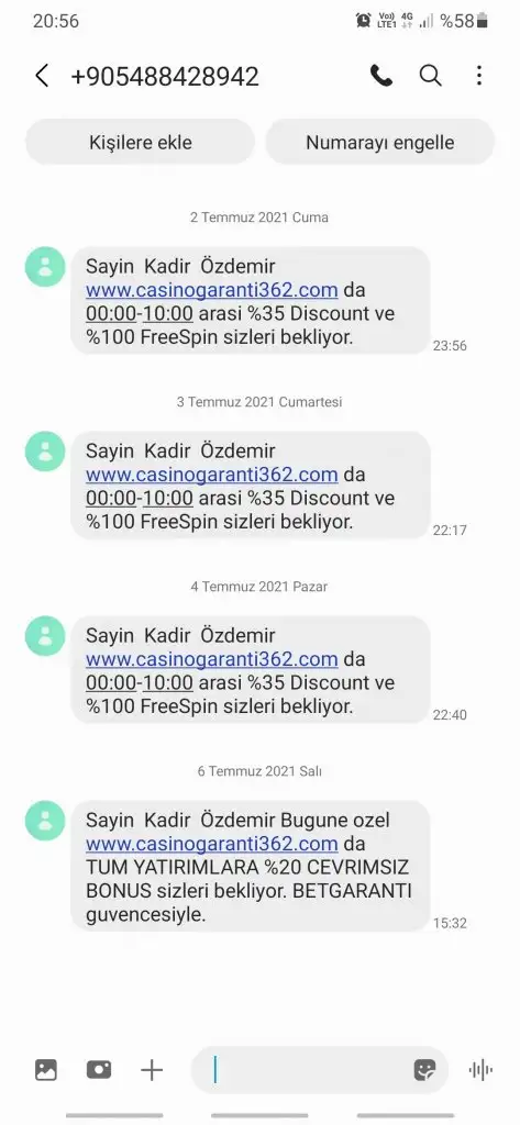 Az önce de önceki numaranın hemen hemen aynısı baska bir numaradan msj geldi