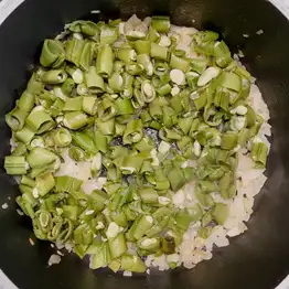 Zeytinyağında soğanları ve sarımsakları pembeleşinceye kadar kavuruyoruz.