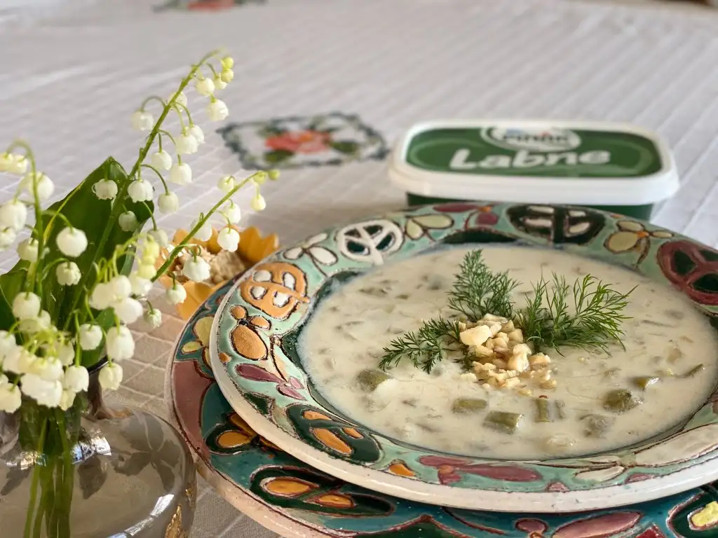 Bu sırada ayrı bir kasede 2 kaşık Pınar Labne ile biraz sütü pürüzsüz hale gelene kadar karıştırıp kaynamakta olan çorbamıza ilave ediyoruz.
