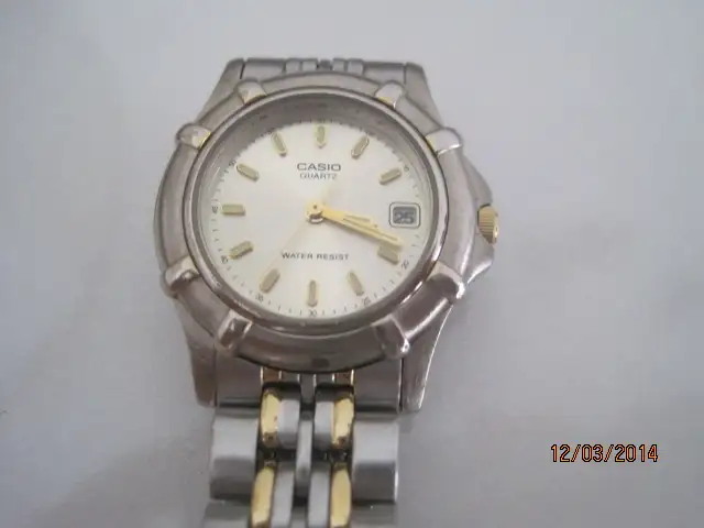 Pil takılması lazım. Sorunsuz çalışıyor. Sarı yerleri altın kaplamadır. Tek kusuru resimde görülüyor. 25 tl.
