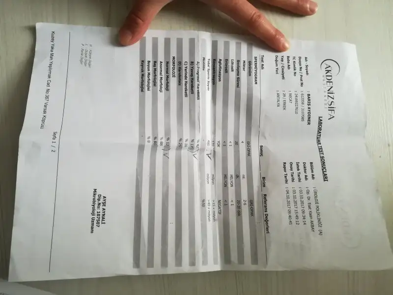 Canım seninle gecenlerde de konuşmuştuk yardimci olmuştum bana. Allah razı olsun. Bu da benim eşimin sperm test sonucu. İki ay oldu yaptırali. Bir aydır hergun keçiboynuzu özü ve çakşır suyu icio. Artmıştır heralde biraz.Elimden geleni yapıyorum canım. Dua ediyorlar karşılığında o bile yetiyor bana :)