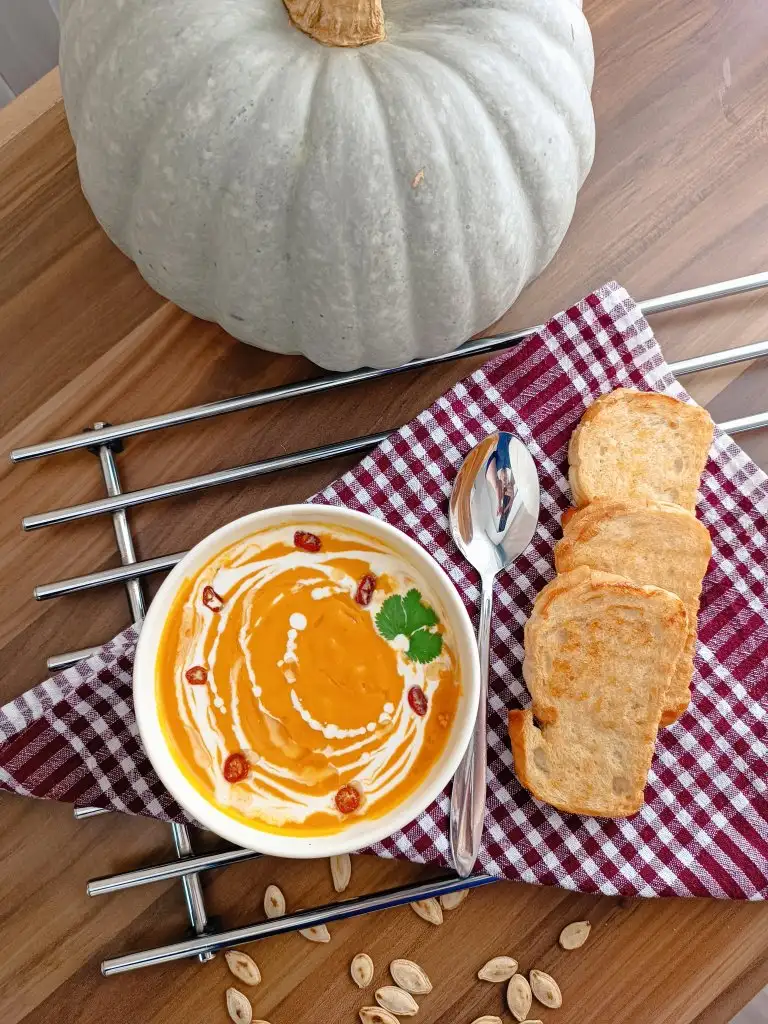 Bu aşamada kremanın yarısını çorbaya katabilirsiniz. Ben yalnızca servis sırasında üzerine koymayı tercih ettim.