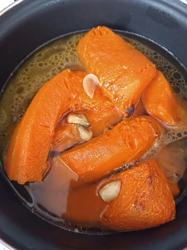 Pişen sebzeleri tencereye alıp üzerine sıcak su ekliyoruz.