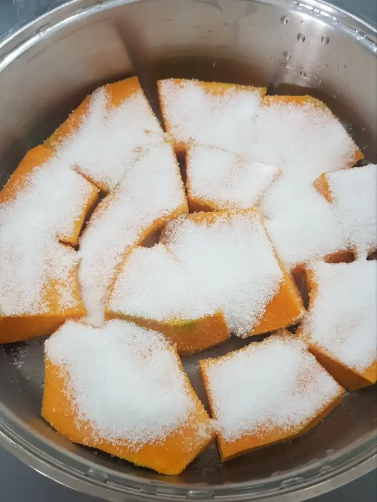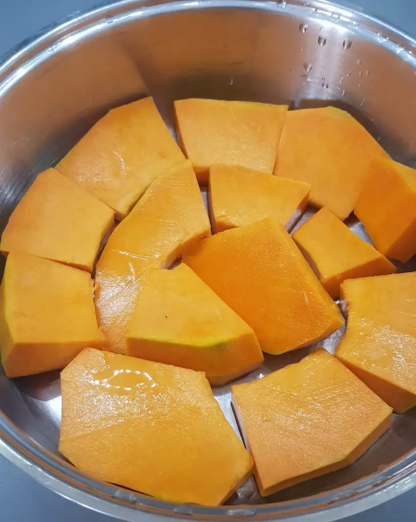 Önce balkabaklarını 1 su bardağı kadar şeker koyarak bir süre bekletelim, pişirelim ve soğumaya bırakalım. ( Şekeri damak zevkinize göre ayarlayabilirsiniz. )