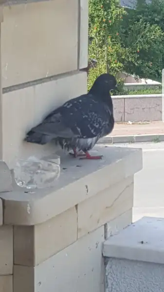 Taze ekmeği ufalayıp verdik birazını yemiş, fakat sanırım tutamayacağım balkon kapısını açtığım an tedirgin oldu uçacakmış gibi.Güvercin bu :)