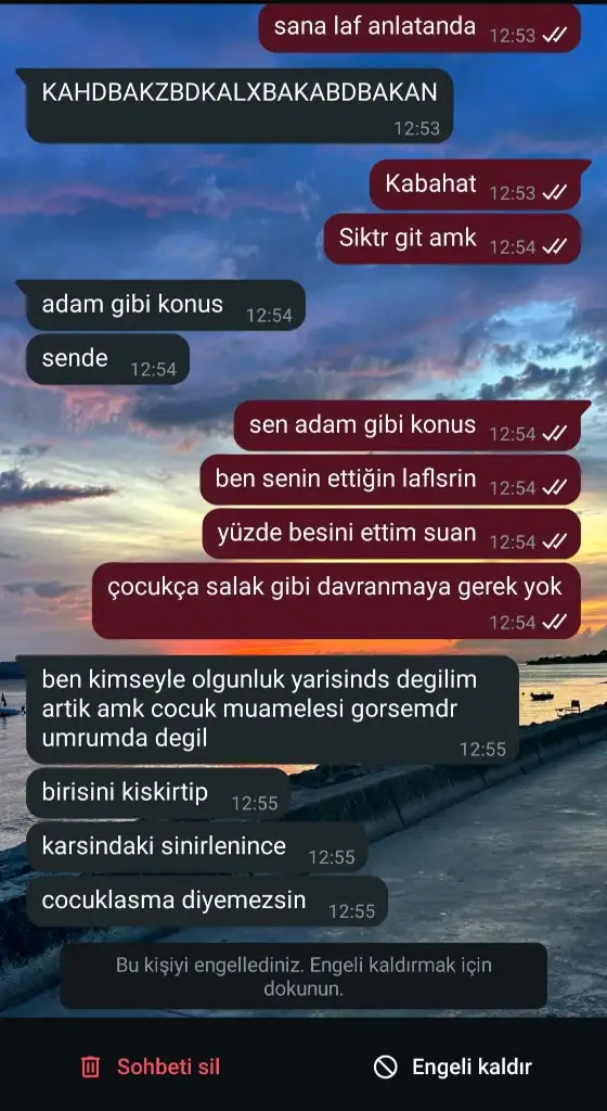 Çocuk gitmiş başkasıyla sevgili olmuş. Neden ısrarla başka hesaplardan yazıyorsun? Konuşmaya ve onları ayırmaya çalışıyorsun? Defalarca engelliyor, konuşmak istemiyor. İlişkisi var anlamıyor musun? Kendine bir saygın olsun , gururlu olun ya. Bu ne böyle.