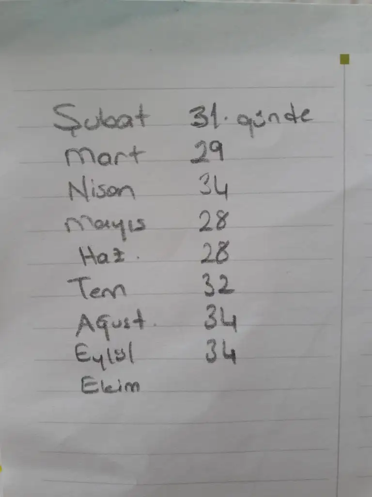 korundugumuz icin hic dikkat etmemistim. Simdi ortalama olarak nasil hesaplamam gerekiyo ? En son 26 eylulde adet oldum 1gun gecikme gosteriyo takvimimde suan. AMAA bu listede son 2aya bakarsaamm 34. Gunde adet olcam demekki