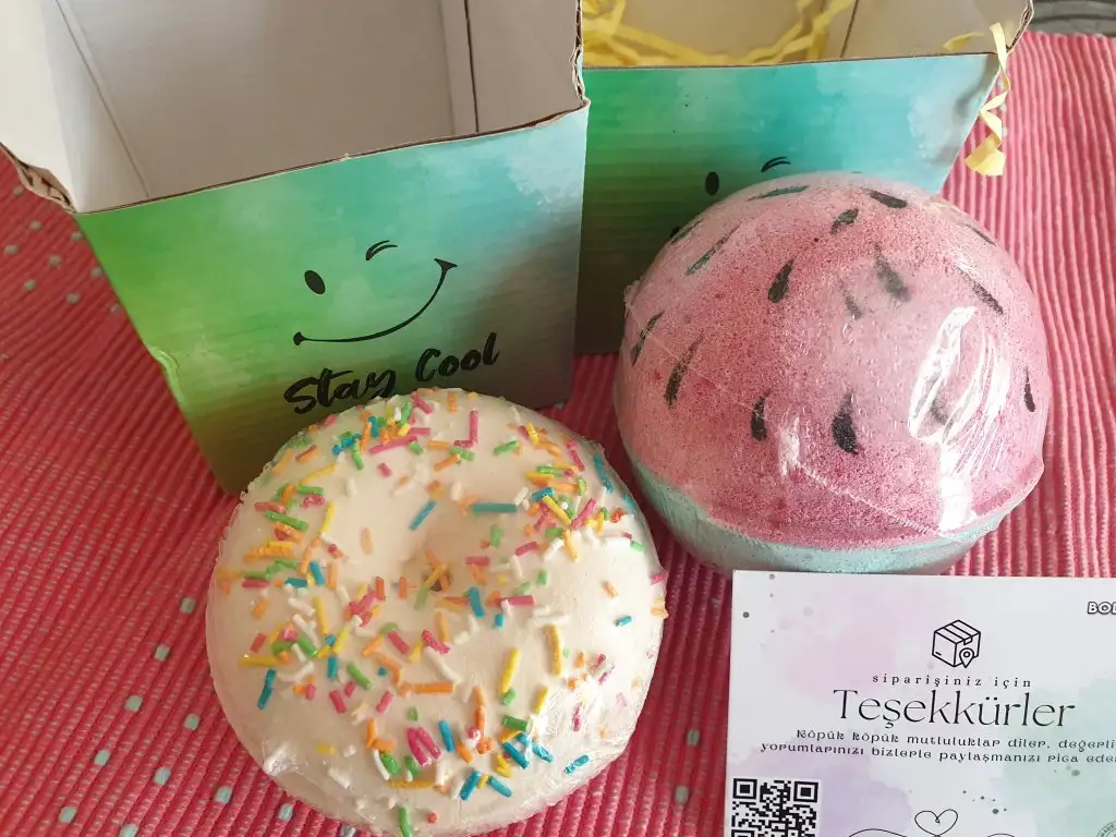 Görüntüleri çok tatlıydı, kokuları da çok güzel, sanki banyo topu değil de şekerli atıştırmalık gibi görünüyorlar.