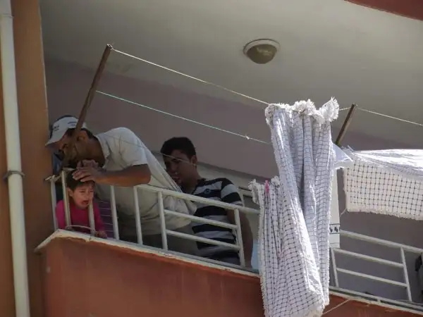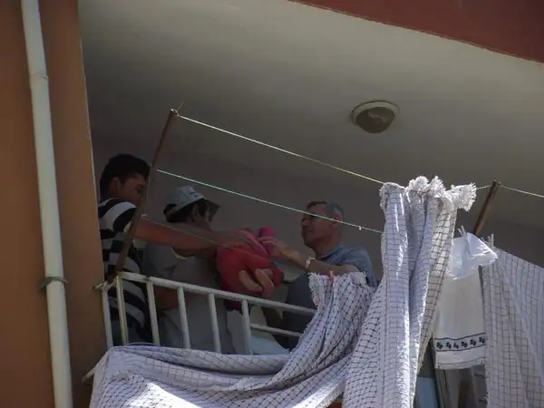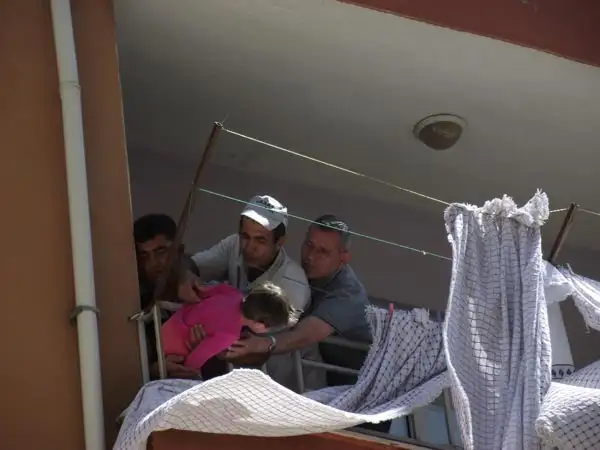 NİĞDEde başını balkonun demir korkuluklarına sıkıştıran 4 yaşındaki Yağmur Guk, esnaf ve belediye işçileri tarafından kurtarıldı.