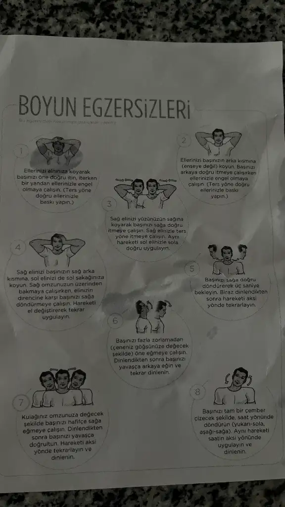 Ben havuz ve yastıktan sonra baya düzeldim uyuşmalar bitti denilecek kadar azaldı bide bu hareketleri duzenlı yapıyorumBen sudan pek hoşlanmıyorum ama kursa gidip yüzme ogrensem iyi olacak. Boyunla alakalı şikayetlerim boynumu yordugumda olurdu bu son uyuşma karincalanmalar devamlı var. Belkide benimkisi psikomatik olabilir. Boynumu eğerek bişey yaptıysam ensemin üzerinde ağrı baş ağrısı mide bulantısı da ekleniyordu başta karıncalanma olurdu bir hafta sonra geçerdi bu bir aydır devam eden geçmeyen değişik bı durum. Şuan ayağımı toplayıp oturayım hemen karıncalanma yogunlasiyor ellerimi kaldirayim karincalaniyor değişik kafam sürekli karınca geziyor gibi. Yani bilemedim drlarda anlamiyorki kendi kendimize anlamaya çalışıyoruz. Sizin şikayetleriniz devamlı değildir