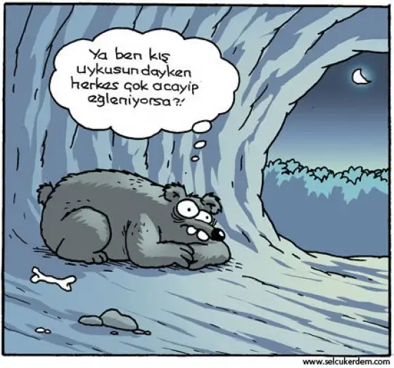 Aynı ben. Hep yorgunum, gün içinde de çok koşturuyorum, 2çocuğum var ve çalışıyorum. Ama doğru düzgün uyuyamıyorum. Geçen bir karikatür yolladı kardeşim 'abla bak sen' diye kesinlikle beni anlatıyor. Bulursam koyayım buraya. Kutup ayısı düşünüyor karikatürde'ya ben uyurken herkes acayip eğleniyorsa'