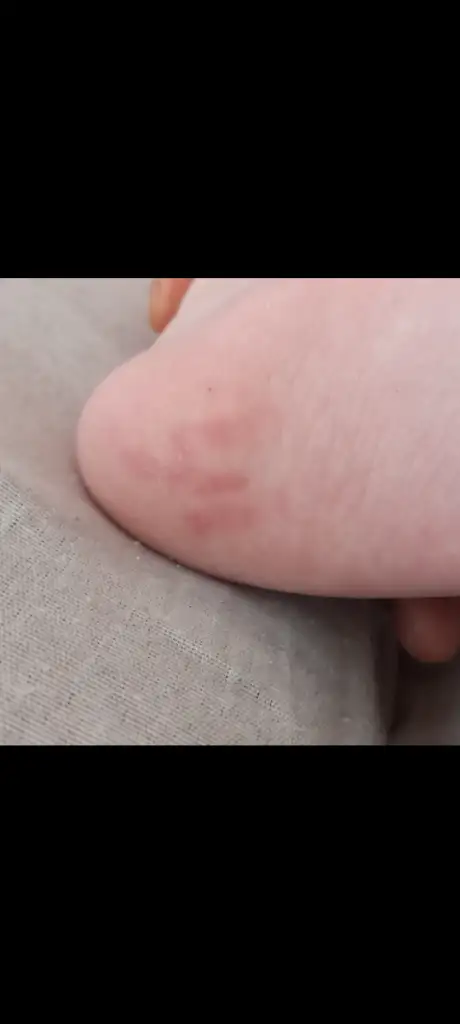 Bu durumda ciddi bir dolaşım sorunu ya da enfeksiyon bulgusu ön planda görünmüyor. Bastırınca solmaması, klasik döküntülerin çoğuyla uyumsuz; ancak bir nesne izi gibi şekilli görünmesi, temasa bağlı bası ihtimalini düşündürüyor.