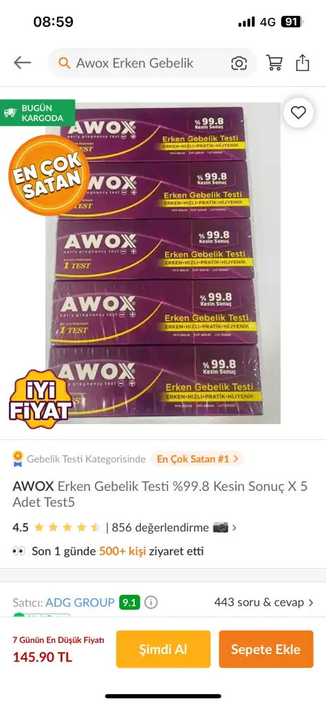 Evet Awox erken gebelik testiTestin markası awox mu bende Türkiyeye geleceğim bari ordan sipariş edeyim dönerken getiririm![]()
