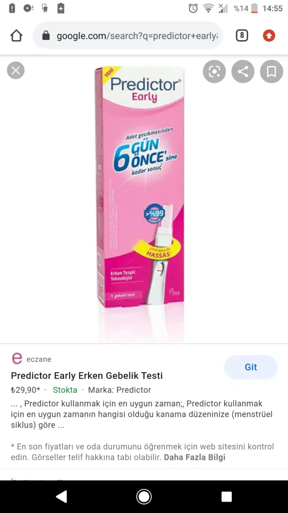 Ben adetten önce de sonuc alınıyor diye bildigi için bu markayı tercih ettim ve göründü çki zaten belirtim de cok. Ama kan testi daha kesin olur tsbiki yaptırcam pztErken gebelik testiyle gebelik testi genelde adetten sonra gosterir