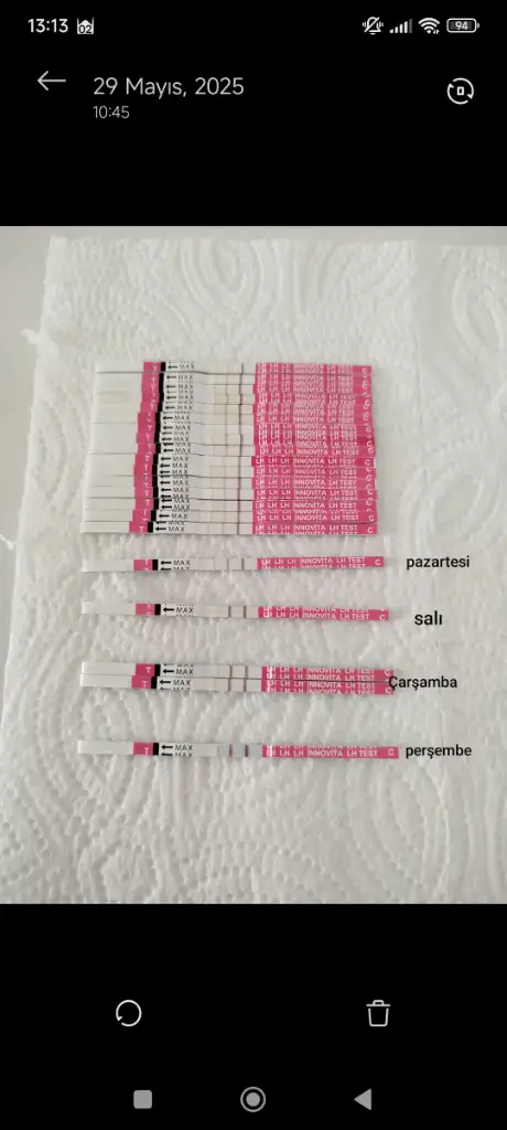 Baştan 3. Ve 5. Testler koyulaşmış baya onların akşamı büyük ihtimalle pik görürdün yapsaydın canım değerlendirdiniz mi peki koyulaşma olan günleri