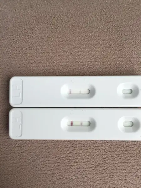 ) bi de birkaç gündür göğüslerim çok hassaslaştı dokunamıyorum neredeyse, ama bu genelde adete yakın olur bende zaten. Yine birkaç gündür ateşimi ölçüyorum, 36,8-36,9 falan çıkıyor, normalde 36 larda seyrederdim. Ve çok şişirdim başınızı biliyorum ama 2 gün önce ve bugün ovulasyon testi yaptım. Aşağıya fotoğraf koyucam üstteki 2 gün önce alttaki bugün yaptığım lh testi.