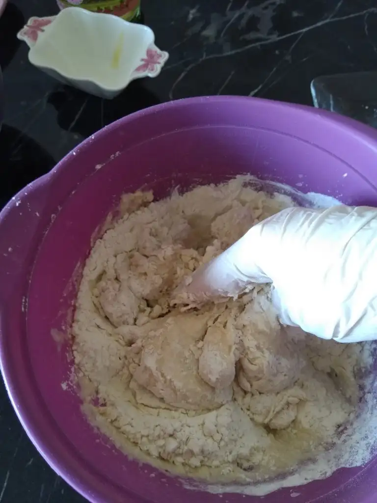 Güzelce karıştırın ve azar azar un ekleyerek, kulak memesi kıvamında bir hamur elde edene dek yoğurun.