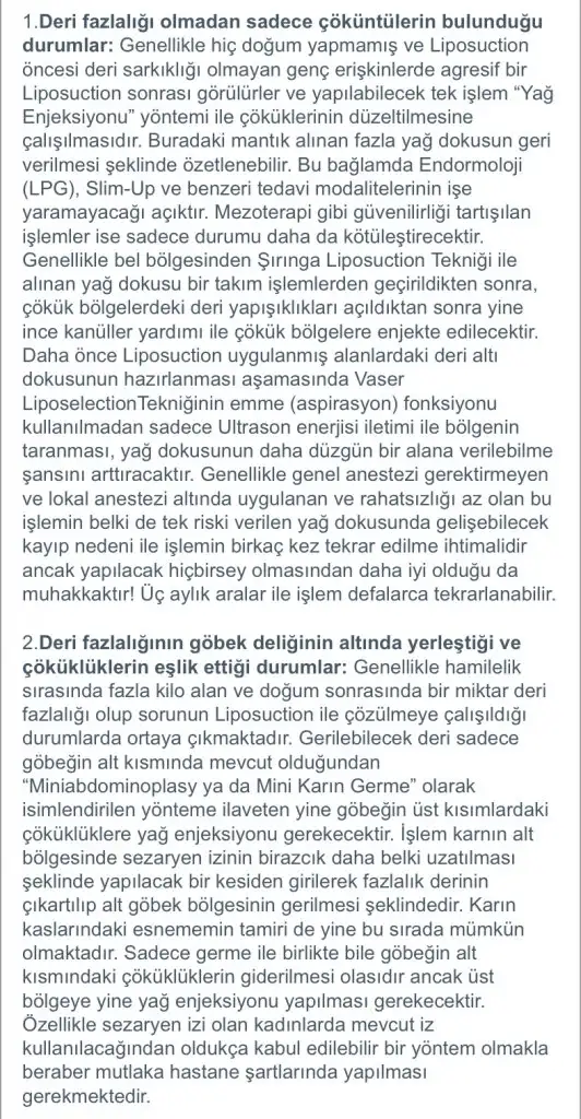 Canım hepsini okudum. Önce sakın ol. Senin bu takıntılı halin aynı ben. Ama bak tekrar ediyorum çaresi var. 1 ay daha bekle. Daha fazla bekleme çünkü şekillenmenin %90 i belli olur. Doktor değiştirebilirsin. Gerekirse başka doktor güvenilen bir cerrah bu işi çözecek. Hafif bir lipo ile çözümlenecek. Lütfen sakın olmaya çalış.
