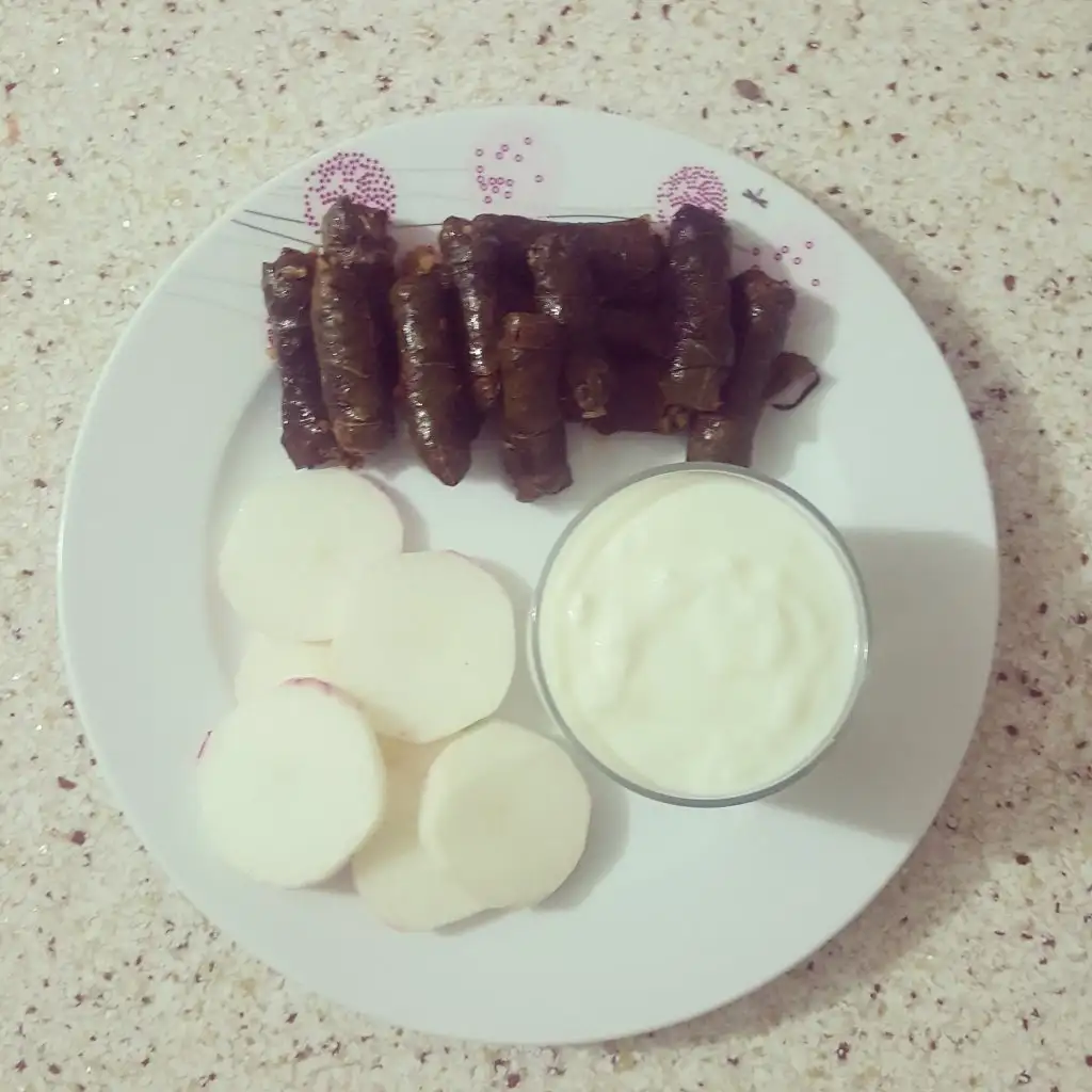 1 tabak kuru biber haşlaması sarımsaklı yoğurt ve az yağlı.