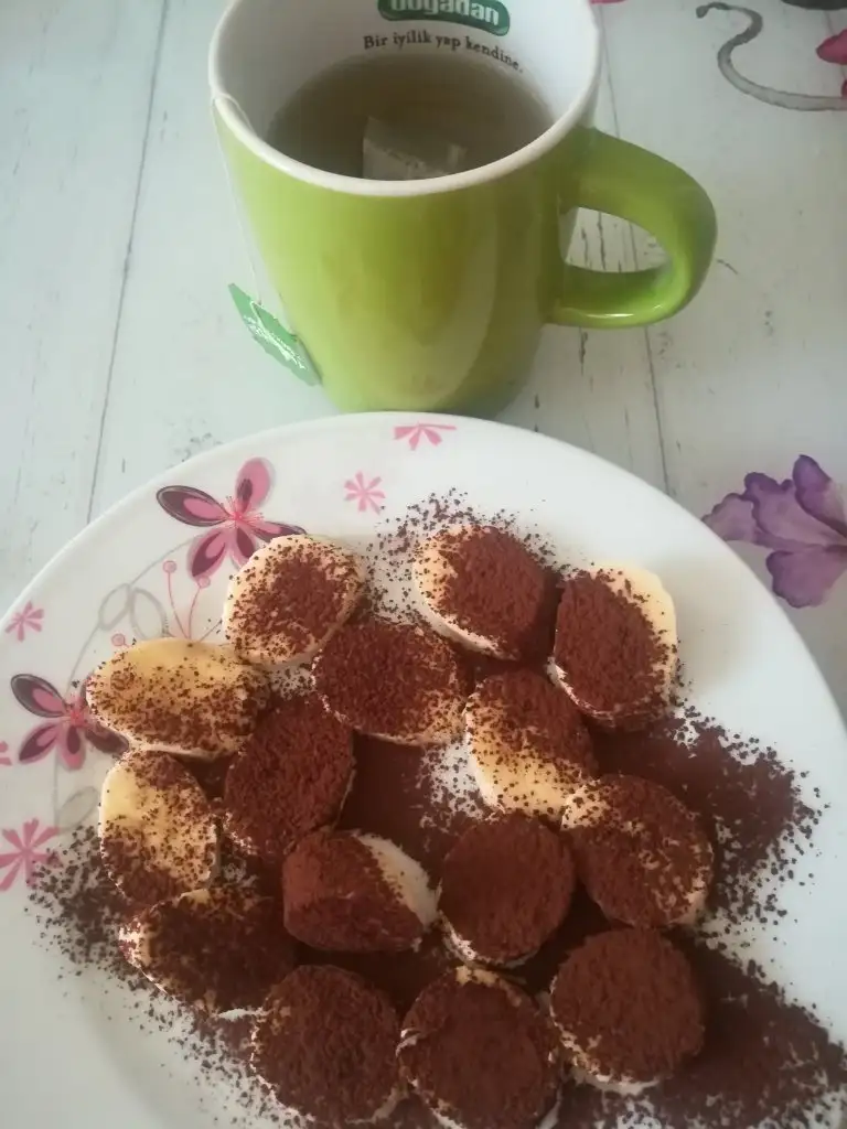 1 küçük muz arası 2 tk şekersiz fındık ezmesi ve tarçın