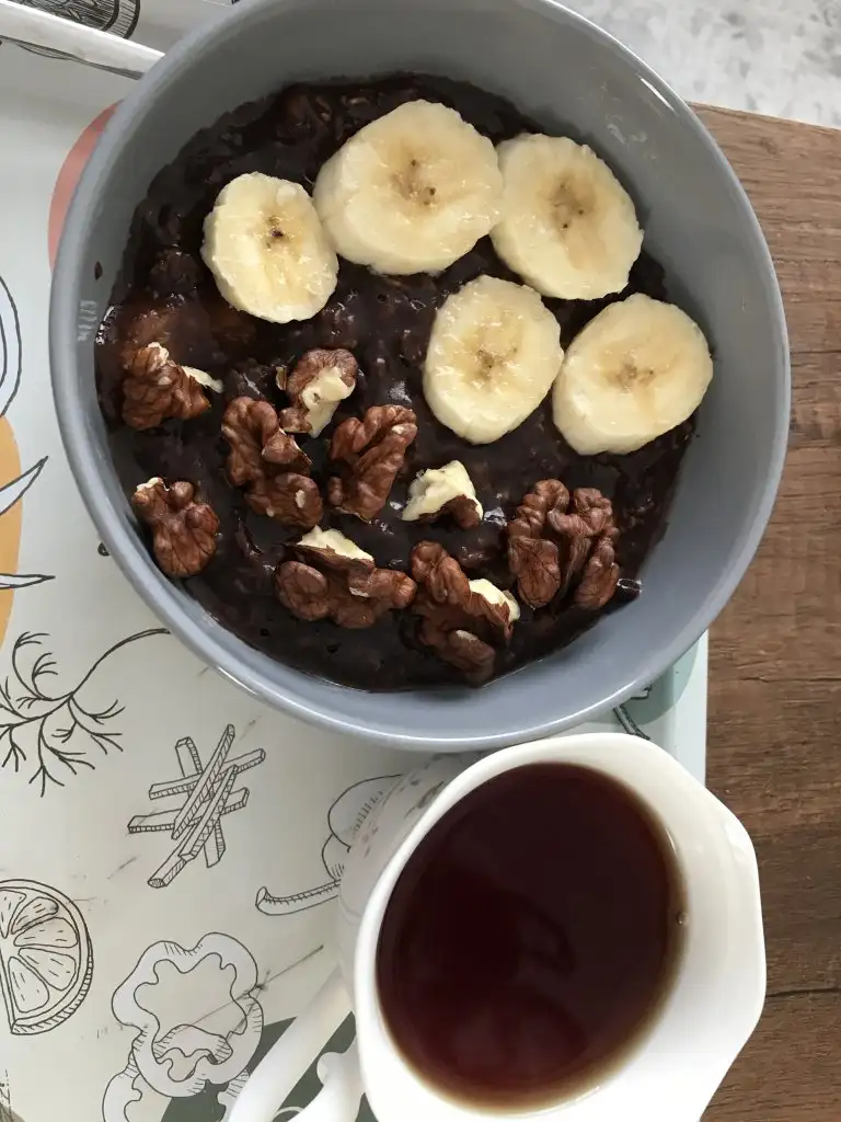 Kahvaltı 11:00 yulaf lapası, (su, yulaf ezmesi, kakao,bir tk bal, 1 muz, 2 cevizEki Görüntüle 2753641 kahvemi şuan içiyorum 1 armut ile 😊Eki Görüntüle 2753642