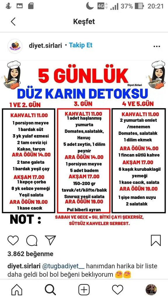 2 gün karbona dikkat edersen eksi bile gelirsin