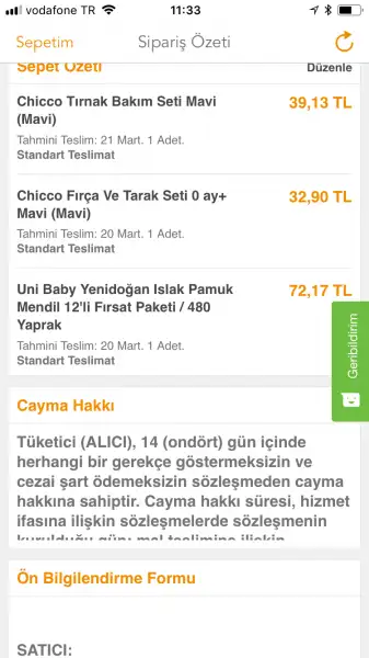Kızlar ben son kalan ihtiyaçlarımız olan chicco tırnak makası setini ve tarak setini (fiyatları fotoda mevcut ) birde evokidsin katlanabilir küvetini aldım bugün 120 tlye. Küvet gelince merak eden arkadaşlara bilgi veririm. Artık bi 2 ay hiçbirşey almayıp doğuma yakın yapılacakları da son ay yapmayı düşünüyorum