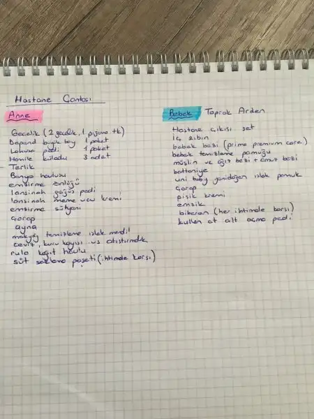 İnternette çok abartı listeler gördüm o kadar şeye ihtiyaç olur mu bilemedim. 5 tane hastane çıkışı takım yazan gördüm 2 hafta kalınacak sanki hastanede
