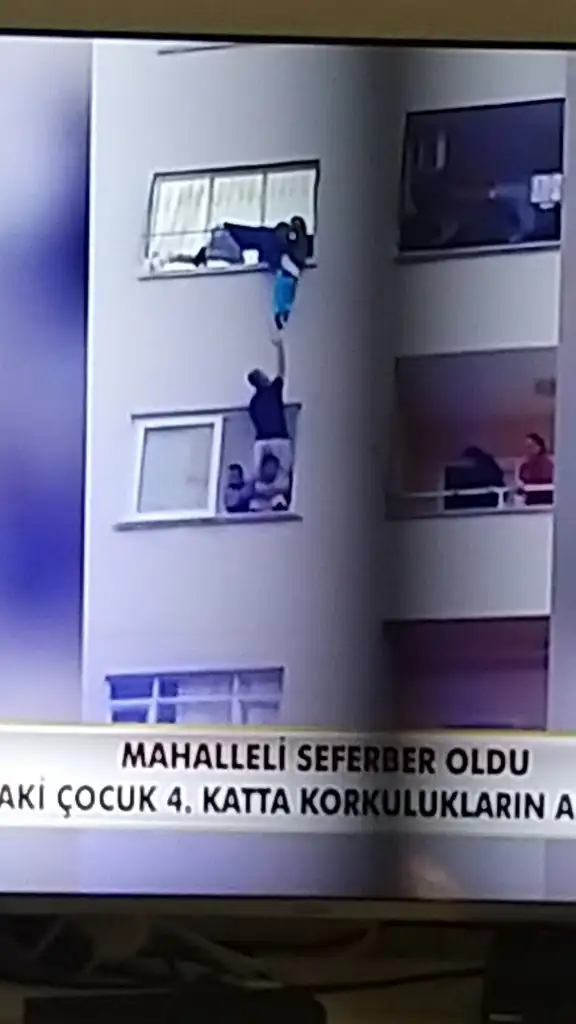 Çocuk pencereden çıkıp korkuluklara sıkışmış