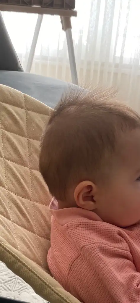 Yerim onun kafasını 😁😁 minnacık düzlük var ama büyüyünce geçer merak etmeyin. Yatış pozisyonunu sağa sola değiştirin sık araliklarla