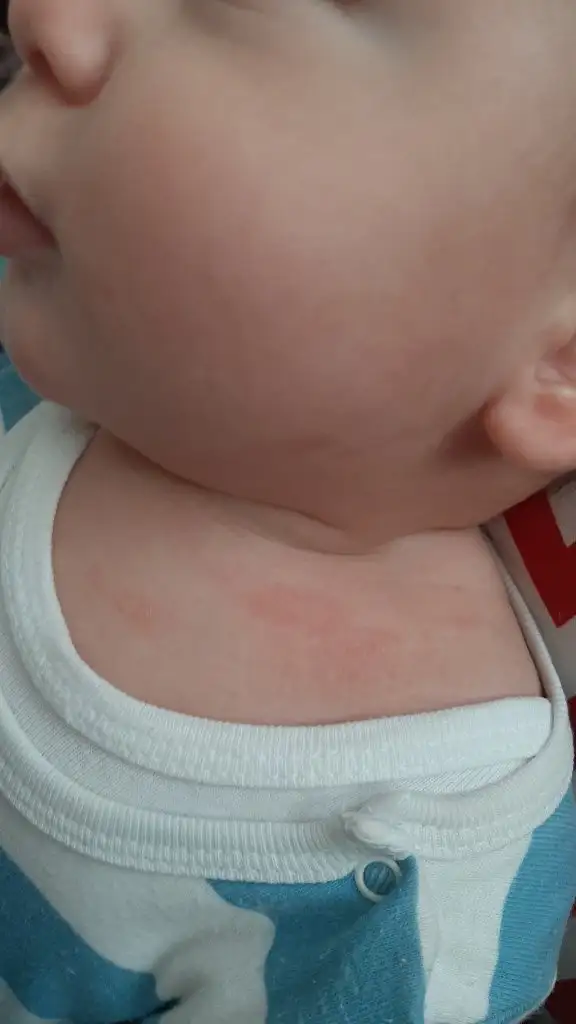Sıcaktan yada kıyafet yada battaniye gibi kullandığınız eşyanın malzemesi alerji yapabilir. Benim oğlum da bebekken polar battaniyeye sarmıştık artık polardan mı sıcaktan mı böyle olmuştu.