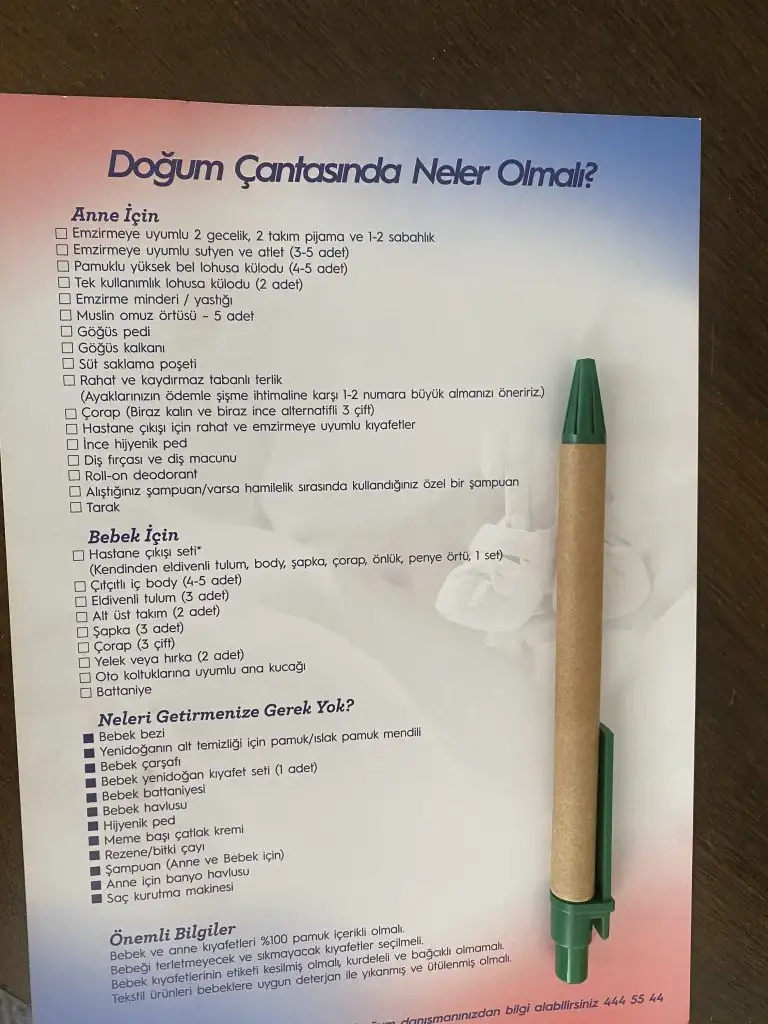 Cok guzel ay insallah hastanelerden de memnun kalirizKizlar bu da hastanemizin verdigi dogum cantasina koyulacaklar listesi. Biz zaten hepsini konustuk ama gorselini de paylasmak istedim sizinle![]()
