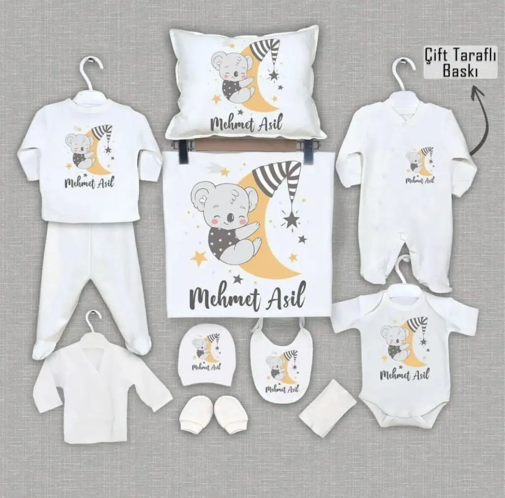 Merhabalar ben bebek giysileri ve bebek battaniyeleri örüyorum.. Düşünürseniz özelden size insta sayfamı atabilirim.. Türkiye nin her yerine kargo ile gönderiyorum..Kızlae bugün oğluşumun ilk hediyesinin haberi geldi. Adı bu değil ama, bizimkinin adı başka olacak. Bu resimdeki taslak. Kardeşimin eşi hazırlamış. Öyle sevindim ki. Kızlarından kalan park yatağını da gönderecekler. Bugün ben de o yatağa uygun yastık yorgan çarşaf kılıfları için kumaş seçtim ikişer tane. Bir yazlık bir kışlık battaniye kumaşı da seçtim. Arkadaşım dikecek. Onunla seçtik zaten. Çok mutluyum.