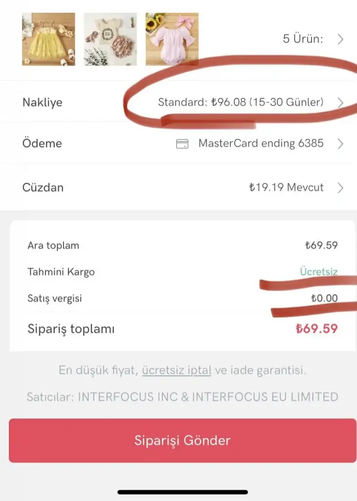Kuzu ben de altta kargo ücretsiz ve vergi 0 yazıyor ama yukarda nakliye ücreti 96 yazıyor. Sende de bu şekilde mi çıkmıştıKızlaaar PatPat tan aldığım tulum geldi göründüğünden çok daha güzel ve pofudukmerak edenler vardı hatırlayıp etiketleyemedim, 21,45₺ dışında herhangi bir ücret ödemedim bu arada. Bu fiyata bunu aldığıma inanamıyorum Eki Görüntüle 2938579