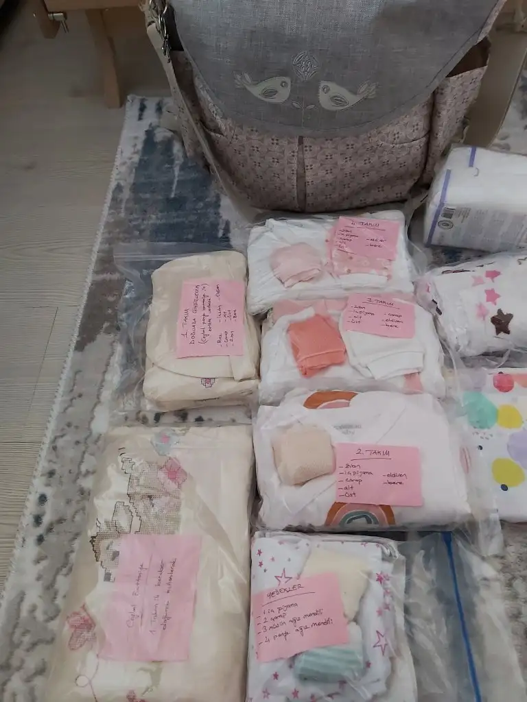 Paketlere notlar ekliyorum. Eşime anlattım ama ben karıştırırım o anda dedi. Annem ya da kayın validem yetişirse inşallah onlara zaten çantamı açar gösteririm.