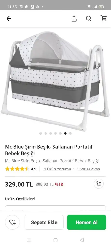 Bir diğeri de ufak beşik. Bunu ucuz bir şey almıştım ama çok iş gördü. Mutfakta salonda vs her yere taşıyarak gündüz kullandım. Yalnız odasında bırakma konusunda korkuyordum ilk zamanlar. Kesinlikle tavsiye ederim. Onu da ekliyorum. Markası farklı ama desenine varana kadar aynısıydı.
