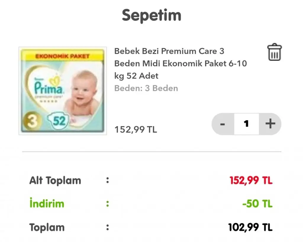 Evet ona baktım en ucuz paketi 16.66 TLye geliyorPrima pampers pure ıslak mendil çok güzel pahalı ama hakediyor