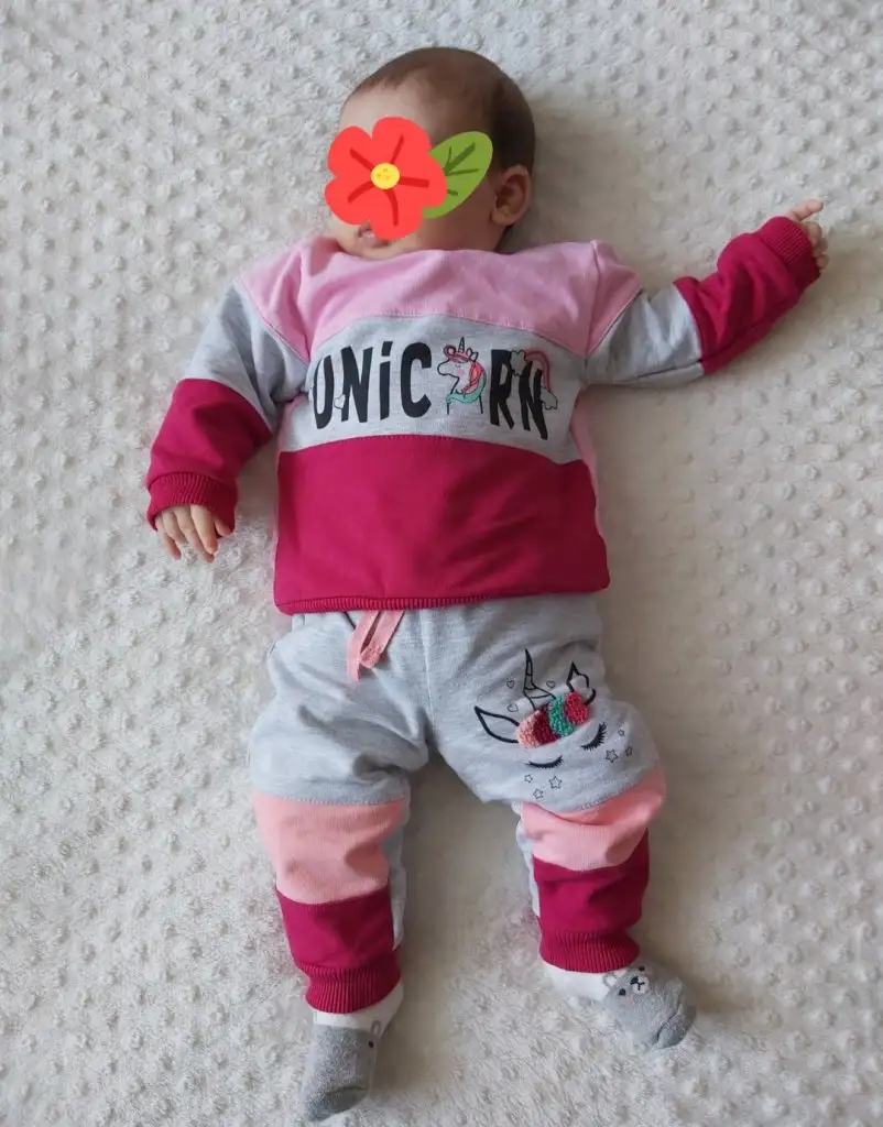 Üzerindeki civilin 6 ay yazan bi takımı. 40ından beri giyiyo. Bu çocuk 3430 doğdu. Şu an taş çatlasa 6 kg bence.