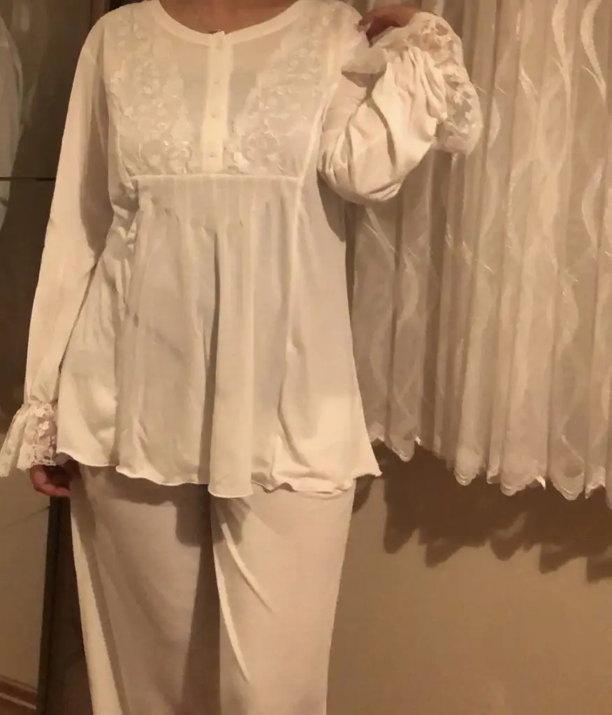 Ben hastaneye 1 gecelik 1 pijama takımı hazırlamıştım. Normal doğumdu. İlk gecelik giydim ama hemen sıkılıp pijamaya geçtim. Pierre cardin sevmem ama içime onun takımı sindi. Çok rahat giydim. Bir iç pijaması vardı bir de dışında ince bir hırkası. Ekledim 2 türlü resmini de. Geniş rahat olsun diye large beden almıştım. Son günlerde olur da kilo alırsan diye bir beden büyük alınabilir. Ben almamıştım ama rahat oldu.Kızlar selamAranızda tesettürlü olan var mı?Kendinize pijama mı aldınız gecelik mi?Hangisi rahat olur