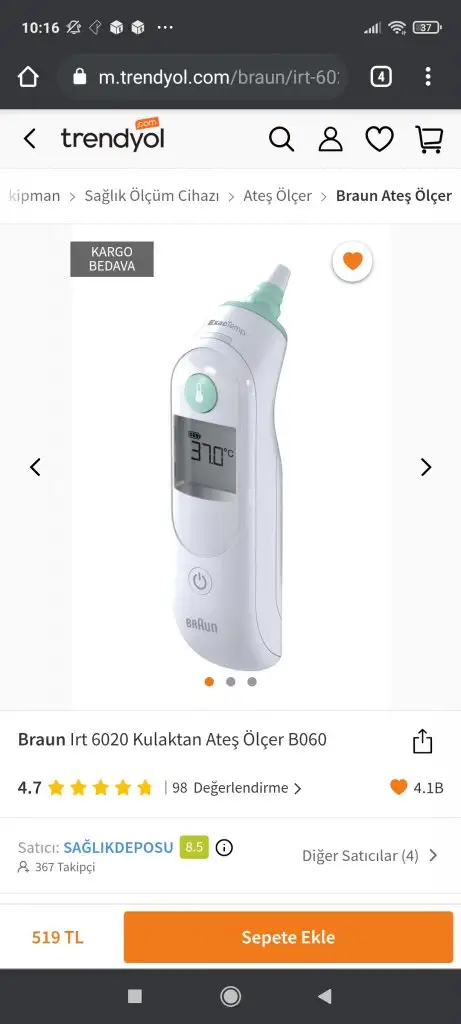 Mühendisinoglu paylaşmış bir tane braun koltuk altından olculenlerden. 162 liraydı.Ateşölçerler çok pahalı ya ucuzundan alsak çubuklularla da teyit etsek yetmez mi? Ben zaten ateşlenir ateşlenmez alır giderim doktora Allah korusun.