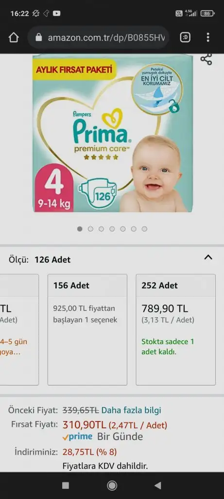 Ya kızlar cidden şaka gibi.Bu mu yani indirim 28 TL.Ne diyim yani bilemiorum.Bunlar olmazsa olmazlar bunlara erişim bu kadar pahalı olmamalı ya.Ben bişi takip etmicem wala.Google a yaziorum premium Care 4 numara diye Akakçe ve cimriye bakiorum en uygun fiyat hangisiyse ordan aliorum hep.Sinirimi bozamam bunları takip edip.