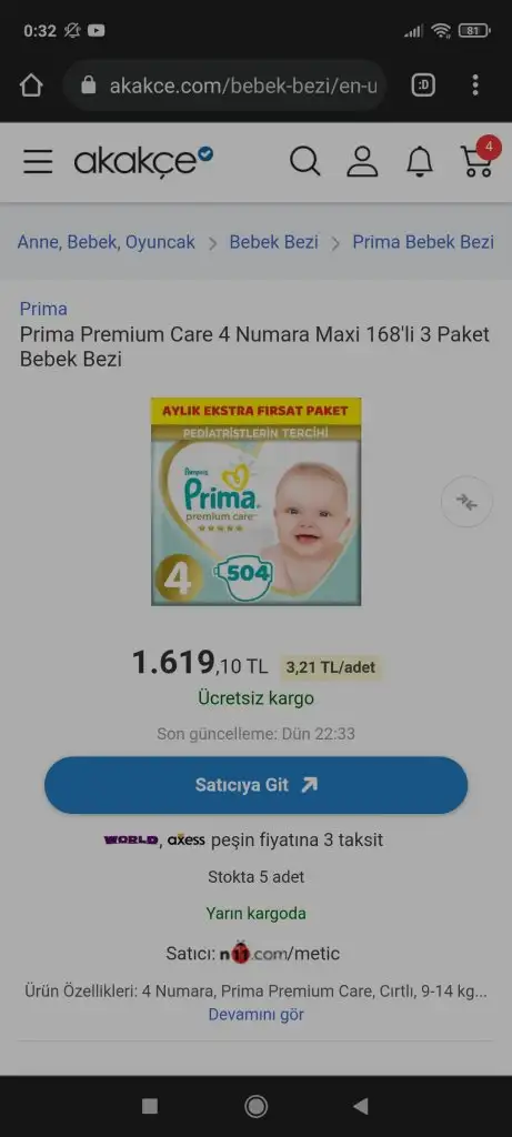 Merhaba 504lüde indirim yok ama amazondan 126lı olarak 4 paket aldığınızda 504 adet yapıyor ve 310.90dan 1.243₺ye gelmiş oluyorBenimkinde hala indirim yok.Alicam mecbur.3 stogum bitmek üzere.Artik 4 e baslicam ben kızlar.8 civarı olduk biz.