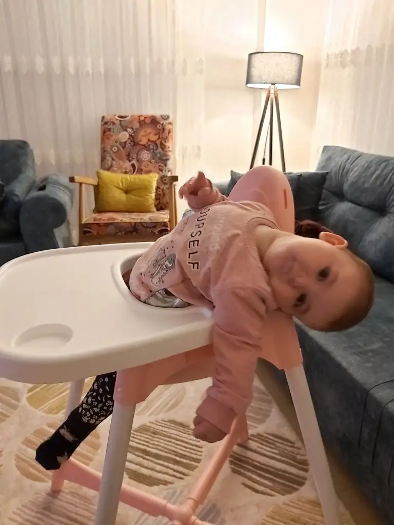 Bence rengini sevmediği için inmeye çalışıyordu ama sen bilirsinBence çok tehlikeli ya benimkinin mama sandalyesindeki tipe bak şimdi. Bu iki ay önce neredeyse...